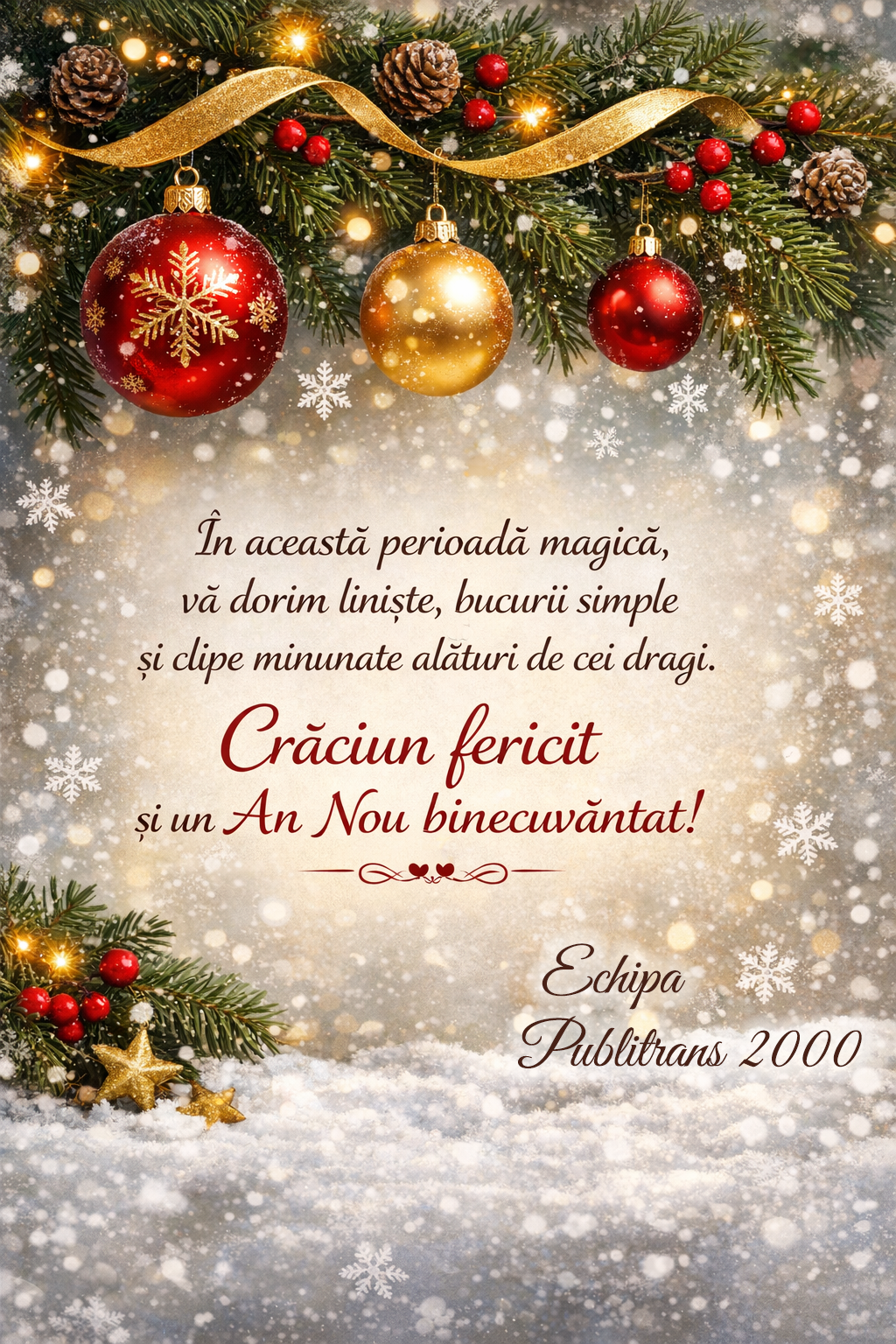 🕗 Program redus 24 decembrie 2025: 08:00 – 12:00 31 decembrie 2025: 08:00 – 12:00